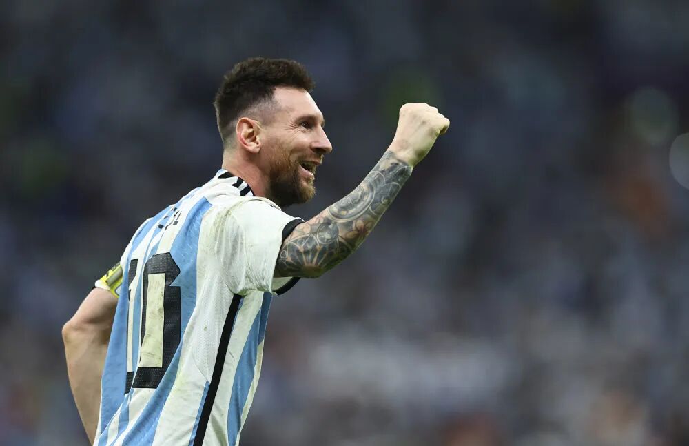阿根廷队球员梅西在比赛后庆祝胜利。新华社记者 丁旭 摄