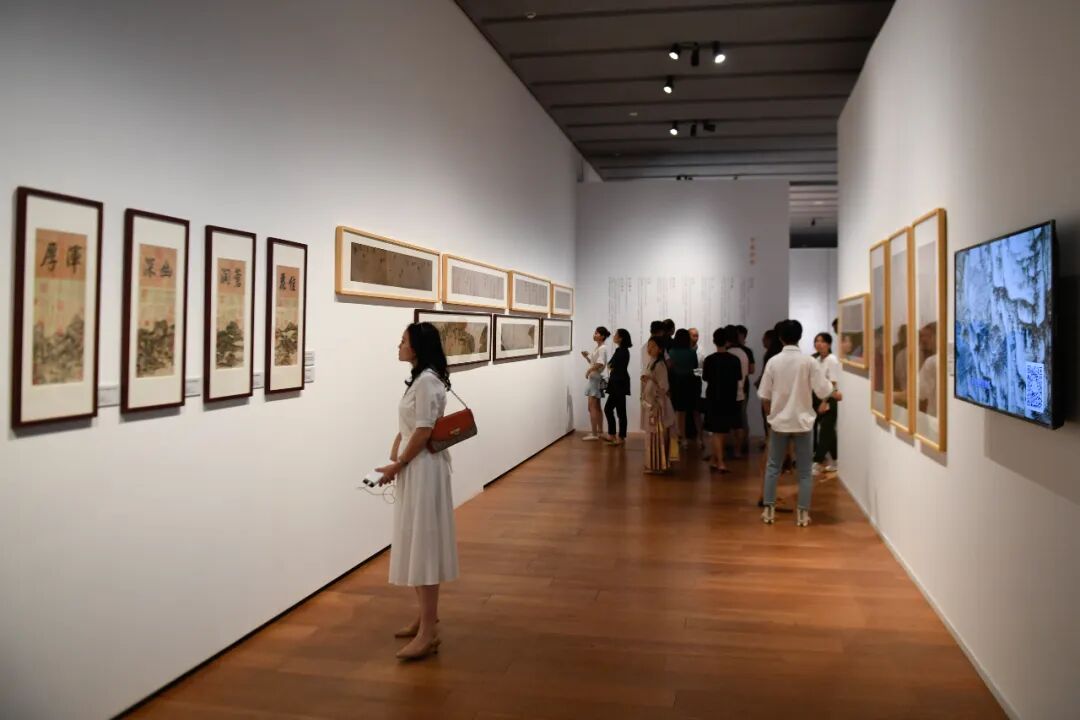参观者在浙江省嘉兴市文化艺术中心观看盛世修典“中国历代绘画大系”嘉兴特展(新华社 2022年6月30日摄)。