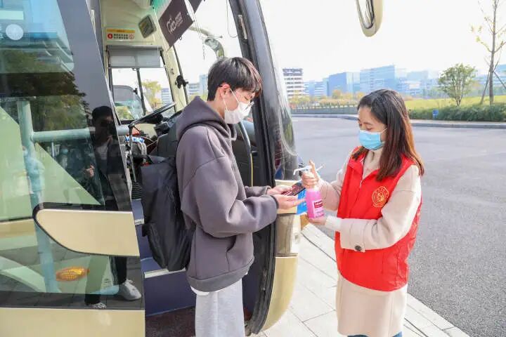 12日,是杭州师范大学“愿返尽返”学生返乡的第一天。清晨,几辆大巴车已在校园里的专线发车点等待,它们将兵分4条线路,载送学生免费直达火车站和飞机场等杭州市内的交通枢纽。该校学工部副部长曹永勇说,开通不到24小时,已有千余名学生预约专线。往年学校也会安排送站的大巴车,但这次不一样的是不限人数,学生无论预约多少,学校都会安排发车,确保一人一座,愿返尽返。
