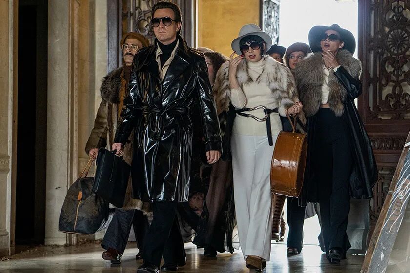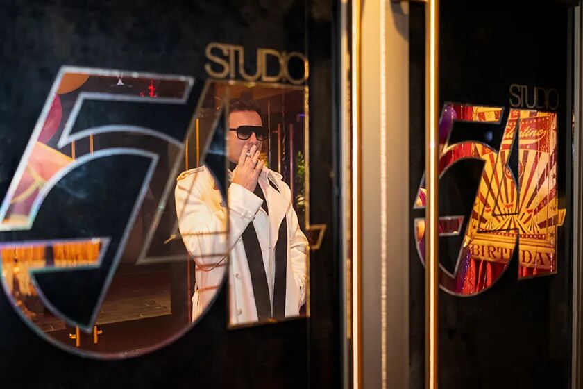 由她试穿的超麂皮衬衫裙瞬间走红,成为当年销量最好的“爆款单品”。侯斯顿也因此赚到制作成衣以来的第一桶金,这笔丰厚的资金让他的店面开到了麦迪逊大道,也为他之后的高定设计奠定了物质基础。有了财富也有了缪斯,侯斯顿不断扩张着自己的时尚版图。他极简的线条与干净的剪裁几乎每次设计大秀都让美国时尚圈为之一振;他参与的凡尔赛之战,与法国老牌服装设计师竞赛依旧不落下风,也让世界记住了他的名字。他结交权贵名流,女明星爱他发疯,她们穿着侯斯顿高定参加他的party,这样的华服美衣声色犬马,亦成为了迪斯科文化巅峰中的一帧。《侯斯顿传奇》在我眼中最妙的是,剧中随便一个名字、随便一个地点都早已是传奇。哪怕是蹦迪场所,都是。Studio 54:没有什么能比它更能体现上世纪70年代的迪斯科时代。于1977年4月在纽约曼哈顿中心区的西54大街上开业,仅在3年后关门大吉。创始人将哥伦比亚广播公司的广播室改造成了一个充满戏剧性的夜总会。摄影棚变成了舞池,阳台座位成为隐蔽的社交地点~也为日后的Disco奠定好了雏形。剧中有一幕,虽然只不过一晃而过,却重现了Disco文化历史上最经典的画面:滚石乐团主唱前妻Bianca Jagger,在30岁生日时骑着白马在Studio 54开派对,而牵马的人就是侯斯顿的爱人Victor Hugo。来这里蹦迪到天亮的名人数不胜数:Andy Warhol、Grace Jones、Calvin Klein……当然还有侯斯顿。 左起Liza Minnelli , Bianca Jagger, Andy Warhol and HalstonPlanet Fashion‘s Disco King。