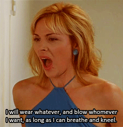 I will not be judged by you or society. I will wear whatever and blow whomever I want as long as I can breathe and kneel.– Samantha