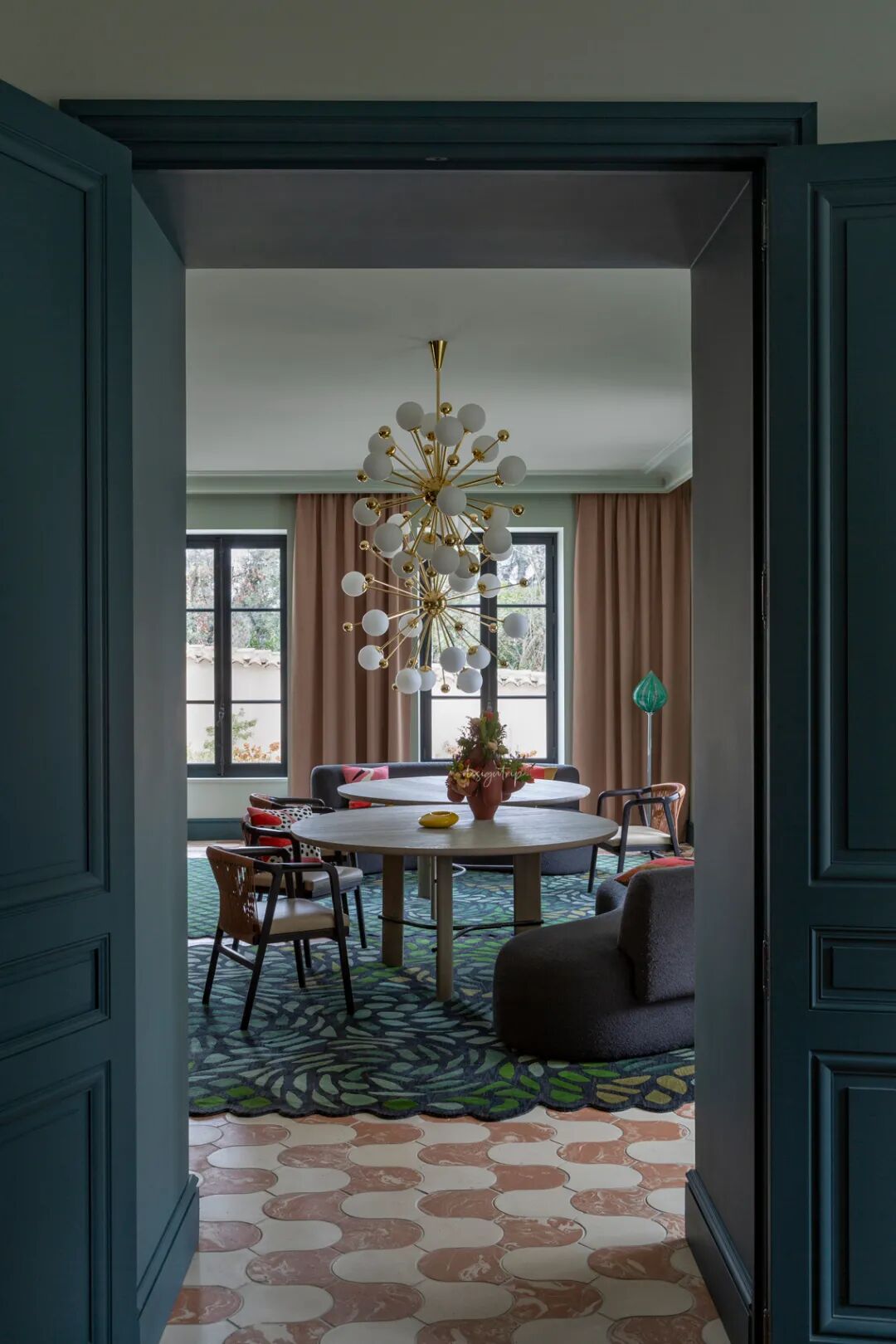 餐厅延续了Cartier将颜色进行复杂关联和组合的设计风格,仅用几件带节奏的几何带和现代风格的双餐桌、沙发、餐椅,就打破了常规的矩形空间,还可以进行休闲娱乐活动。不过蜜总友情提示,只有你的餐厅足够大+光线充足,才经得起这么折腾🍋🍋