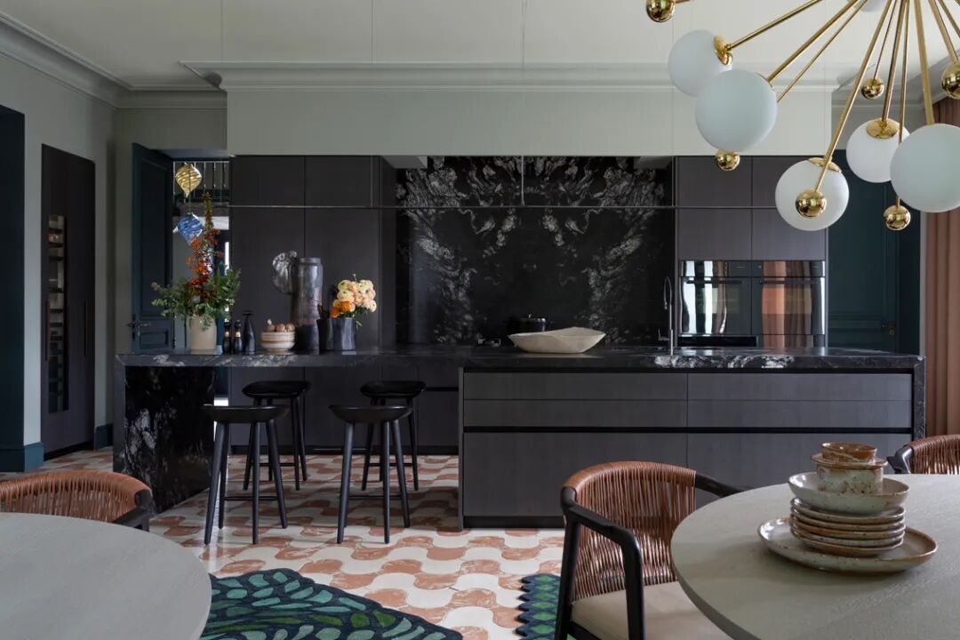 这个区域还放置了很多有趣的家具与装饰品,比如Christophe Delcourt、Particulière系列、CC地毯、Flexform、Baxter以及Bulthaup制作的整套橱柜,这可是号称橱柜中劳斯莱斯的存在,为古典风格中注入了浓浓的现代感。
