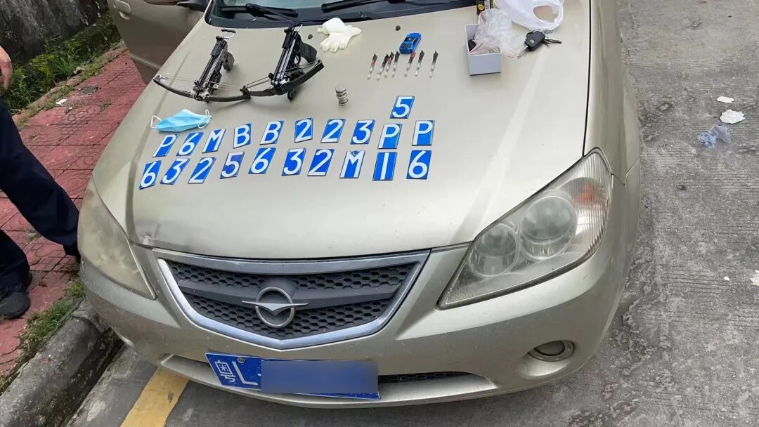 汕尾交警联合多警种分析研判,最终查获悬挂粤L5***2小车及驾驶人李某。车辆涉嫌套牌移交市区大队处理,携带管制弓弩违法行为移交城区分局处理。
