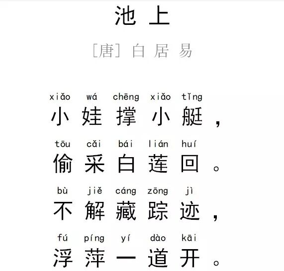 这首诗好比一组镜头,摄下一个小孩儿偷采白莲的情景。从诗的小主人公撑船进入画面,到他离去只留下被划开的一片浮萍,有景有色,有行动描写,有心理刻画,细致逼真,富有情趣;而这个小主人公的天真、活泼淘气的可爱形象,也就栩栩如生,跃然纸上了。
