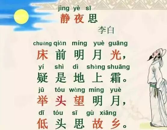 ⑵床:此诗中的“床”字,是争论和异议的焦点。今传五种说法。①指井台。②指井栏。从考古发现来看,中国最早的水井是木结构水井。古代井栏有数米高,成方框形围住井口,防止人跌入井内,这方框形既像四堵墙,又像古代的床。因此古代井栏又叫银床,说明井和床有关系,其关系的发生则是由于两者在形状上的相似和功能上的类同。③“窗”的通假字。从意义上讲,“床”可能与‘窗’通假,而且在窗户前面是可能看到月亮的。但是,参照宋代版本,‘举头望山月’,便可证实作者所言乃是室外的月亮。从时间上讲,宋代版本比明代版本在对作者原意的忠诚度上,更加可靠。④取本义,即坐卧的器具,《诗经·小雅·斯干》有“载寐之牀”,《易·剥牀·王犊注》亦有“在下而安者也”之说,讲得即是卧具。⑤马未都等认为,床应解释为胡床。胡床,亦称“交床”、“交椅”、“绳床”。古时一种可以折叠的轻便坐具,马扎功能类似小板凳,但人所坐的面非木板,而是可卷折的布或类似物,两边腿可合起来。现代人常为古代文献中或诗词中的“胡床”或“床”所误。至迟在唐时,“床”仍然是“胡床”(即马扎,一种坐具)。
