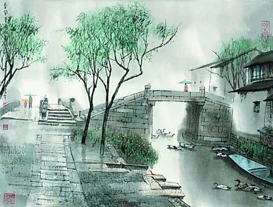 07、春雨断桥人不度,小舟撑出柳阴来。