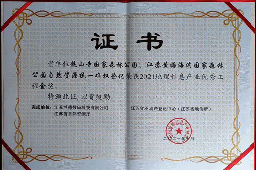 其中,兰德数码组织参与的“铁山寺国家森林公园和江苏黄海海滨国家森林公园自然资源统一确权登记”、“徐州市铜山区自然资源调查项目”荣获金奖,“高邮市农村不动产权籍调查暨湿地自然资源调查试点项目”、“徐州市农村不动产权籍调查及三维地籍建设项目”荣获银奖。