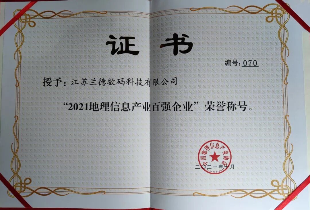 兰德数码凭借雄厚的技术实力、持续的创新能力荣获“2021地理信息百强企业”称号,这也是兰德连续第七年获此殊荣。2021年虽然受南京及周边城市新冠疫情的影响,但公司全体员工凝心聚力促发展,众志成城谱新篇,成功入选百强企业,再次彰显了兰德数码过硬的综合实力、优秀的品牌力和卓越的产品力。