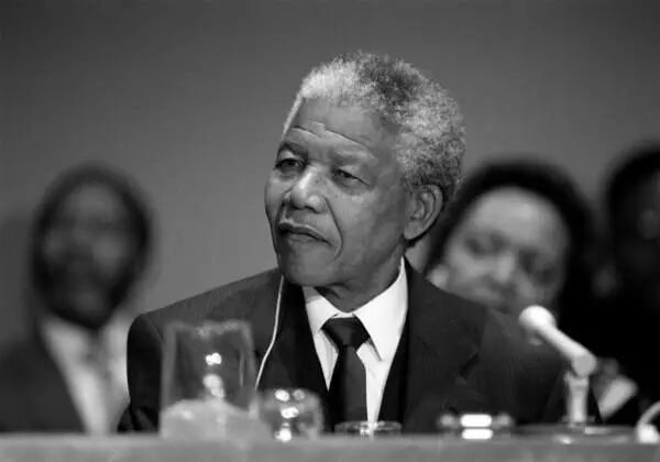 南非前总统纳尔逊·曼德拉1991年12月在纽约联合国总部的新闻发布会上讲话。