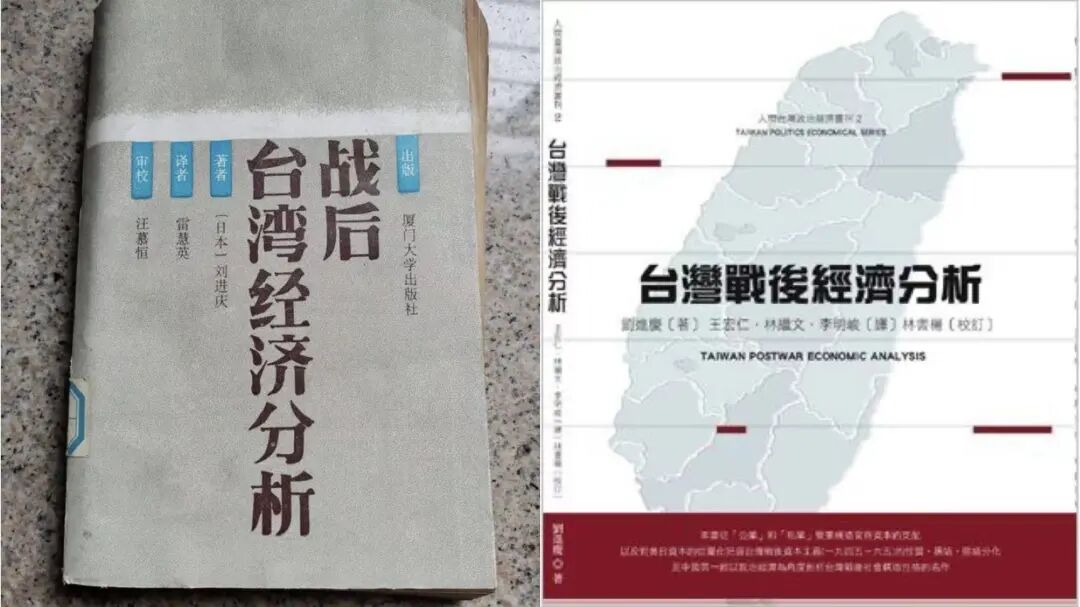 2.劉進慶,《戦後台湾経済分析:一九四五年から一九六五年まて》(東京:東京大学出版会,1975)。劉進慶著,王宏仁、林繼文、李明峻譯,《台灣戰後經濟分析》(台北:人間出版社,1992)。刘进庆著、雷慧英译,《战后台湾经济分析》(厦门:厦门大学出版社,1990)。