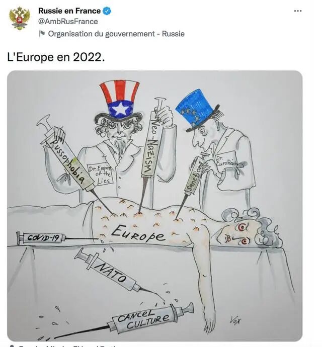 俄罗斯驻法国大使馆在推特上发布的讽刺漫画