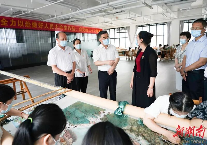 8月29日上午,省委书记、省人大常委会主任张庆伟赴省湘绣研究所调研湘绣产业发展、民族传统文化等工作。他强调,要深入学习贯彻习近平总书记对湖南重要讲话重要指示批示精神,加强非物质文化遗产保护和传承,赋予湘绣新的时代内涵和现代表达形式,让更多人感受到“针尖上的湖湘之美”。