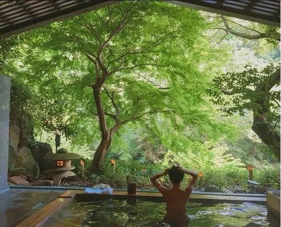 半露天式温泉景色如画