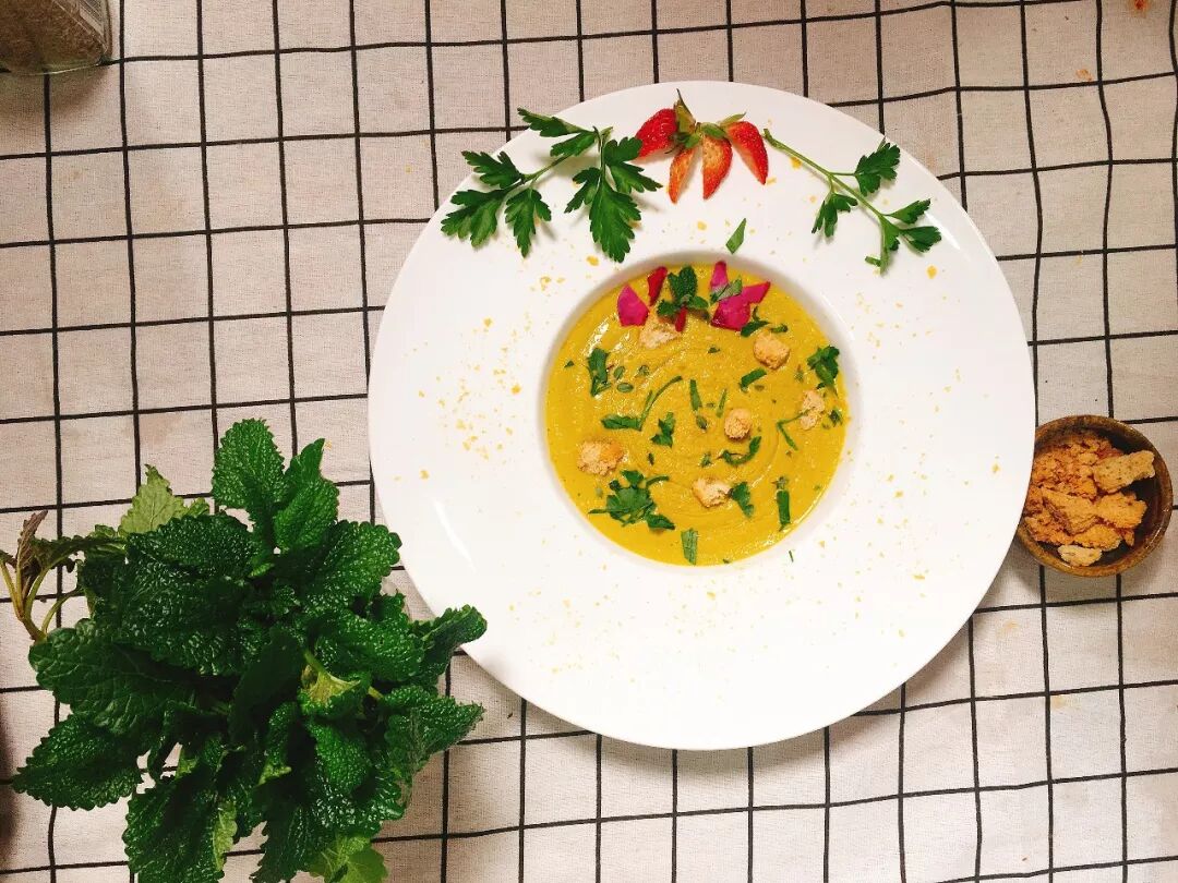 Adrian老师的各种酱汁不仅健康少油,还经常融入各种天然香料,比如助消化的迷迭香,缓解胃胀气的薄荷,能帮我们祛除湿气的白豆蔻,花椒等。只要学会搭配好酱汁的味道,我们在享受美味的同时还能兼顾调理身体,对于很多因搭配不当造成胃寒的素食者来说,是一个很棒的恢复方式。