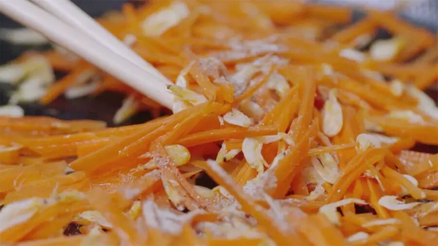 ❸ 做配菜:胡萝卜丝炒干虾皮