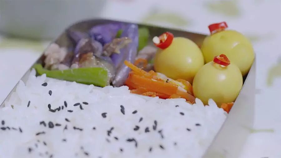今天吉井忍为我们介绍一道味噌茄子便当。这是日本几百年前就有的一道传统菜,做法很简单,依据个人口味可以加猪肉丝或鸡腿肉、青椒等,茄子、糖和油脂的搭配很下饭,除了和白米饭一起享用外,还可以配冷面吃。