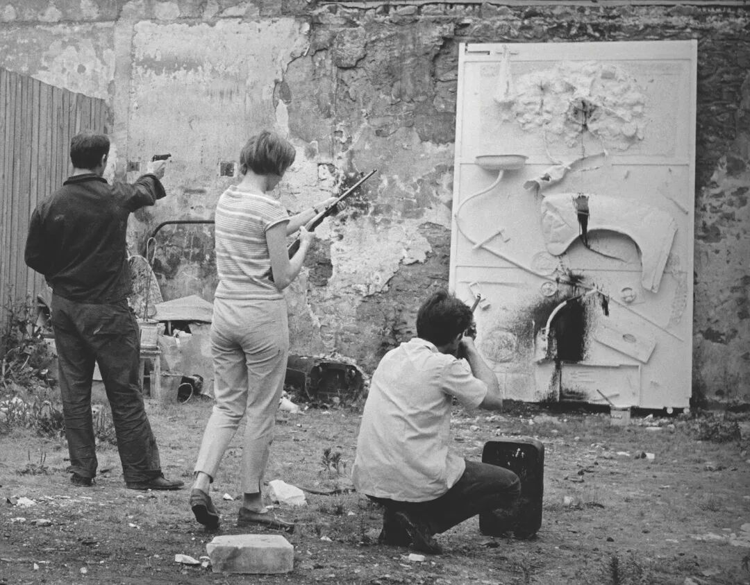 1961年,她拿起步枪,将颜料袋吊在画布上,通过射击让颜料肆意泼洒,创造了前所未有的“射击艺术”。这场“没有死者的谋杀”是对社会陈规的蔑视和对女性力量的肯定。
