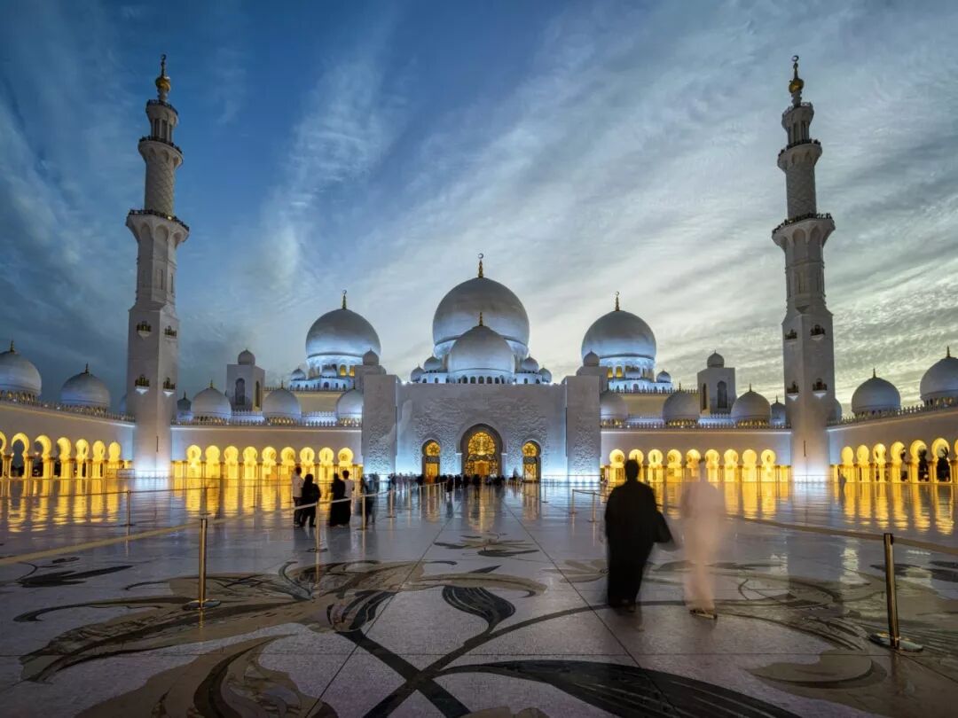 谢赫扎伊德清真寺是是阿联酋最大的清真寺,在穆斯林世界是第二大的,耗资55亿美元,其主祈祷殿大厅的波斯地毯是世界上最大的手工编织地毯,造价580万美金,由1200名伊朗工人采用38吨从伊朗和新西兰进口的羊毛历时一年半编织而成。