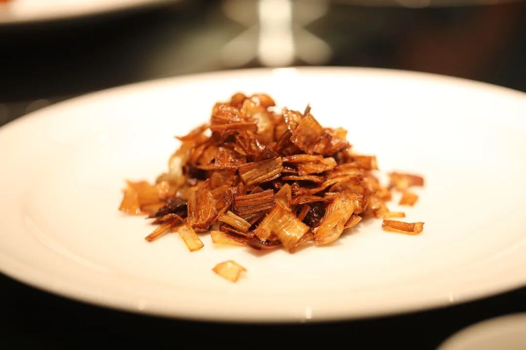 另一盘爆炒山东大葱配大连鲍鱼更得人心,葱被煸得极香,入口焦脆,野性十足,鲍鱼隐于其中,像含苞待放的花蕊,为整道菜维系着一点尾韵的鲜意。