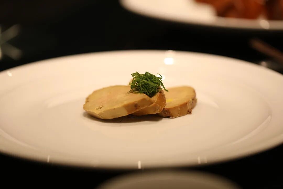 在与朋友的寒暄闲谈中,几道前菜已应约呈上,一道用三种年份黄酒所制的卤水鹅肝,搭配来自摩德纳古老醋庄LEONARDI的浓醇香醋,如甘霖入土,妥帖了一餐之初的辘辘饥肠。