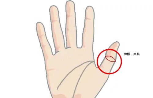 凤眼在大拇指中间的纹路,平常我们看到的这一条纹路,都是一条纹路的,但是如果一个人的大拇指中间的这条纹路,看上去是形成了一个眼睛的形状,而非是一条细纹的话,那么我们也可以确定,其实这个人实际上也是属于身上有天神守护的人。