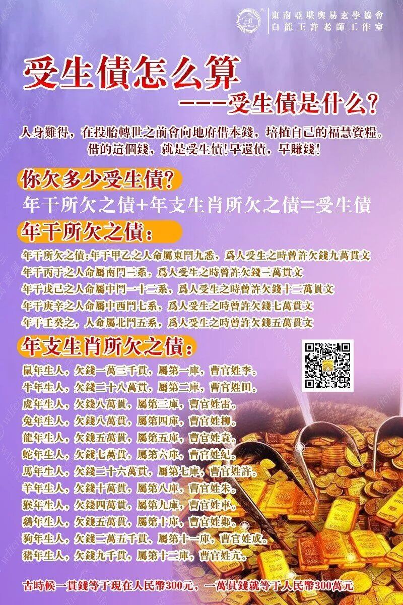 我欠的阴债有一百八十多万贯,这相当于十万多个敕制的金元宝,如果用车拉,有五十多大箱(长宽高五十的那种),得多大的车拉。在现场,见到了道长做法事还阴债补财库等法事用到很多印着”敕令玉皇通宝”,一份通宝相当于一万贯钱。道长显然看出了我的疑惑,跟我讲了玉皇通宝的作用,跟传统的元宝金相比吗除了方便更多的是法力效果,这是玉皇大帝敕制流通官银。这使我很快明白过来,为什么我闺蜜反复跟我说:还阴债是骗人的,我做过。那人给我烧了五袋金元宝,五袋的金元宝才100个啊。问她花了多少钱,她生气的说:花了几百元!这下,她明白过来,自己还的那点有多么的少啊,100个和10万个,差别大到哪去了。我一还阴债就没走弯路,找对了方法找对了道长。哈哈。