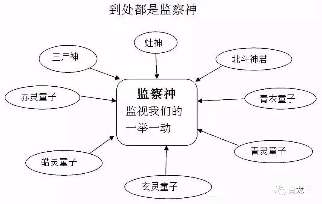 太上感应篇:有三台北斗神君,在人头上,录人罪恶,夺其纪算。有三尸神,在人身中,每到庚申日,辙上旨天曹,言人罪过。月晦之日,灶神亦然。(灶神,是家中的镇宅之神,同时也是家中的监察之神。灶神每三天结算一次,每年十二月二十四日回天庭时,上奏天庭知道。)所以,到处都是监察神,我们为善为恶,老天爷清清楚楚。