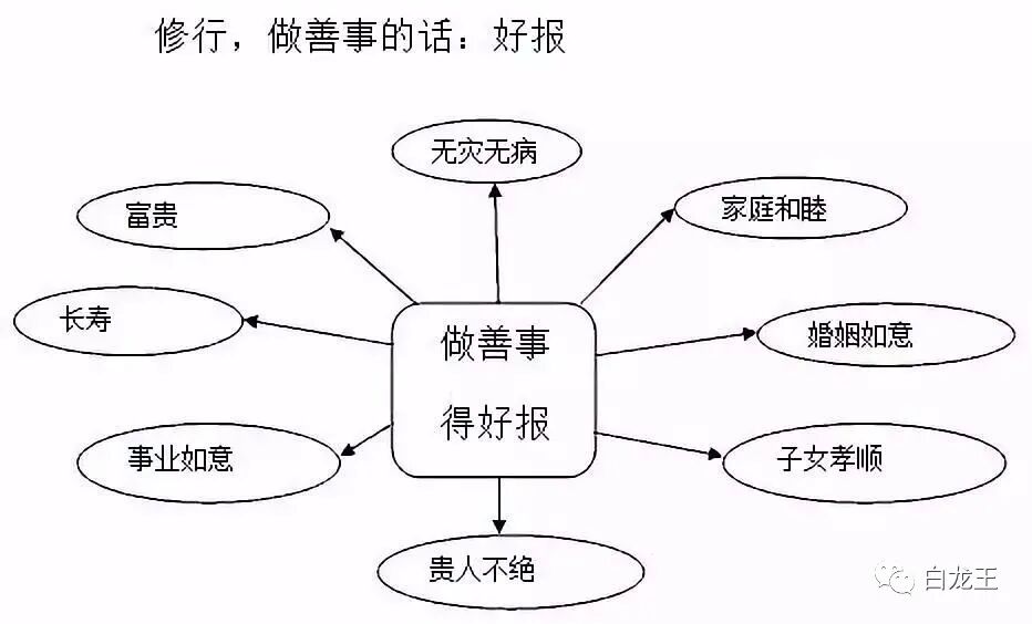 如果我们这辈子做善事的话,老天爷机会赐福赐寿给我们。如果我们这辈子做坏事的话,老天爷就会对我们减福减寿。承负因果报应,丝毫不爽。