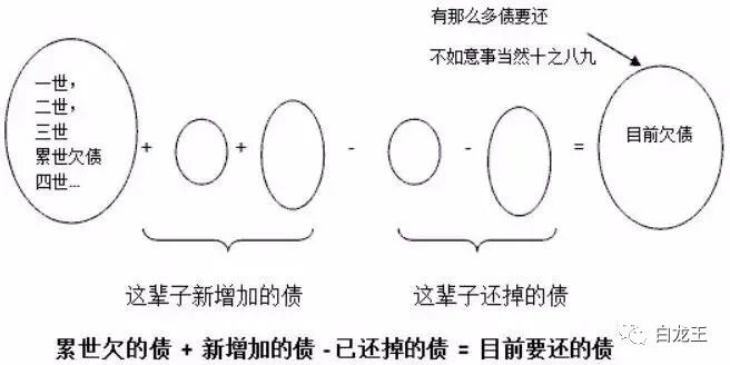累世的债+这辈子新增加的债-已还掉的债=我们目前要还的债