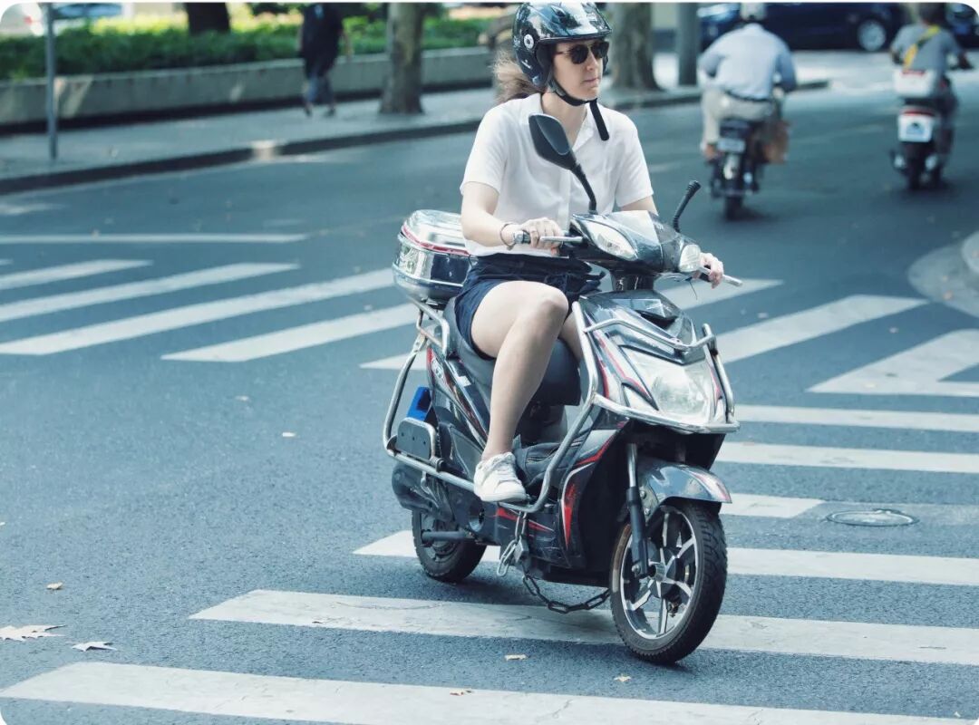 在她眼中,能够在电瓶车上挂满大包小包,并且在滚滚人潮中优雅地保持平衡,甚至一边骑车一边打电话,这简直像表演杂技般不可思议。