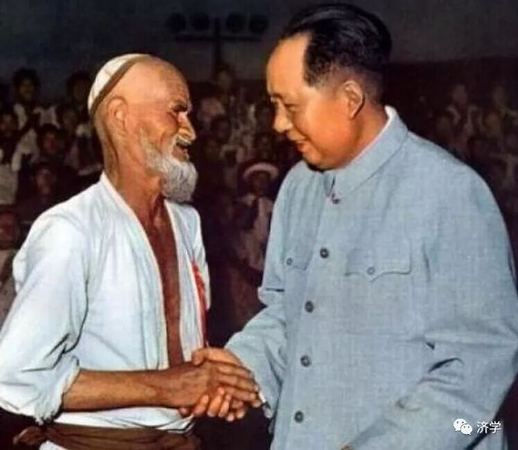 1958年6月28日下午,历经坎坷,75岁的库尔班·吐鲁木同其他全国劳动模范一起喜气洋洋地来到中南海,受到毛主席的亲切接见。他紧紧握着毛主席的手,久久地舍不得松开。他抬头望着慈祥的毛主席,千言万语不知从何说起。瞬间,一张珍贵的照片永远地凝固在历史的记忆当中。