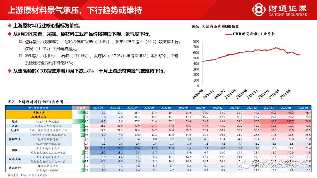 3)PPI-CPI剪刀差持续回落,海外流动性收紧、国内地产投资低迷拖累PPI,猪周期上行推升CPI。