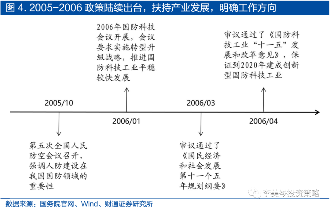 2)行业角度,《国防科技工业“十一五”发展和改革意见》,不仅扶持了相关产业的发展,也为国防工作开展明确了具体方向。