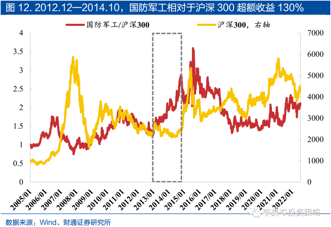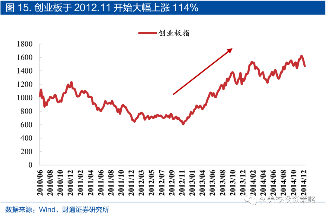 2)行业角度,创业板于2012年11月开始大幅上涨114%,叠加政策放宽,推升军工板块风险偏好。