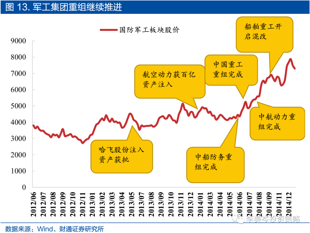2)行业角度,军工板块进行资本注入与技术革新,以中航工业资产整合为典型代表。