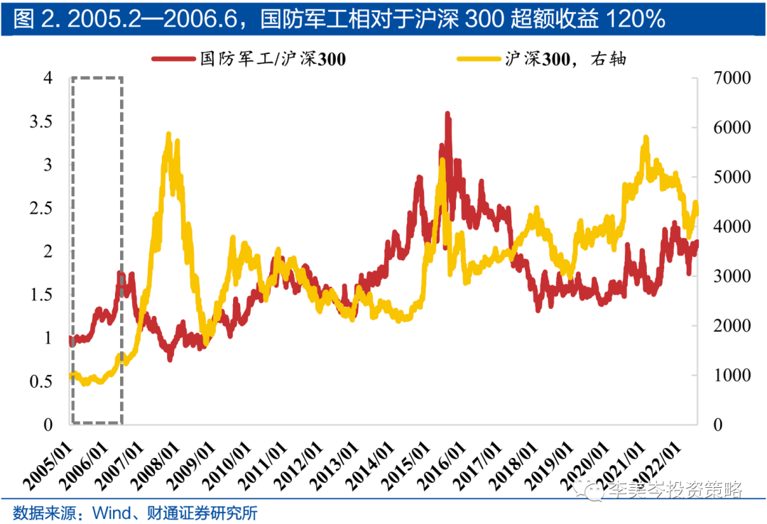 2. 2005.2-2006.6,军费增长+政策扶持,利好军工板块
