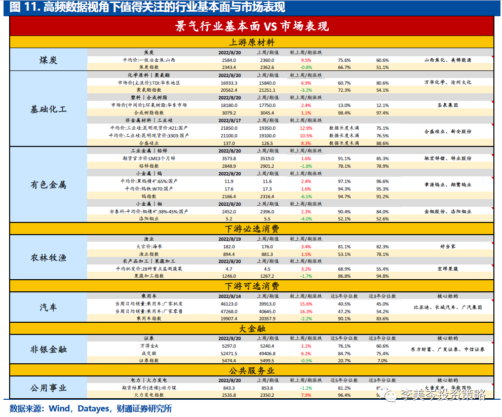5. 本周中观景气:电力保供压力下,高能耗材料价格上涨