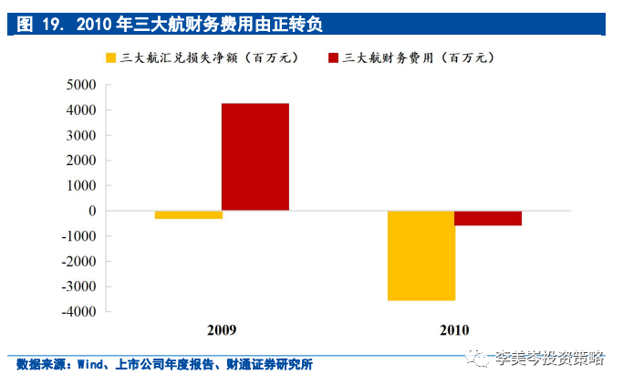 进入2010年下半年,尽管出行需求下滑,但人民币升值接力驱动航空板块继续走强。2010年6月19日,央行宣布终止人民币固定汇率制,实施人民币汇率机制改革,增加汇率弹性,信贷刺激下振作的国内经济与全球衰退形成错位,汇率约束局部放开,人民币进入快速升值通道,升值幅度为2.01%。以三大航为例,相比2009年,2010年财务费用从42亿元下降至-5.6亿元,本币升值对于航司业绩表现影响较大。