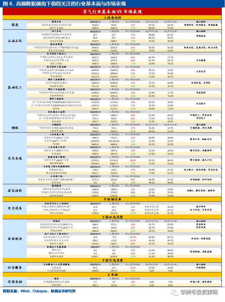 我们构建以价格类指标为主,周、旬频率更新的中观高频指标跟踪体系,从而挖掘值得关注的细分方向,并将其与相关领域核心标的进行匹配,以供投资者参考。