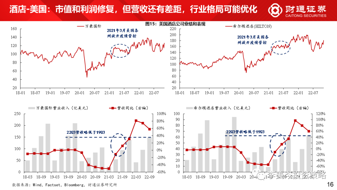 消费板块龙头业绩和股价与行业趋同,业绩和股价修复更快。具体行业看:1)航空和酒店行业出现了明显的行业集中,龙头修复好于行业,市场表现有所反应。2)服务VS商品:商品修复明显好于服务,但其中需要注意,餐饮的修复和线下零售类似,而非和服务类似,同时各地区分化较大,可能有“可选VS必须”底层逻辑。3)线上VS线下:管控放松前,线上网购的业绩和市场表现都明显强于线下零售,而防疫放松后反转,原因或包括边际变化差异和货币政策。4)奢侈VS日常:奢侈消费受影响较小,而且更依赖于现场消费,放松后更受益。