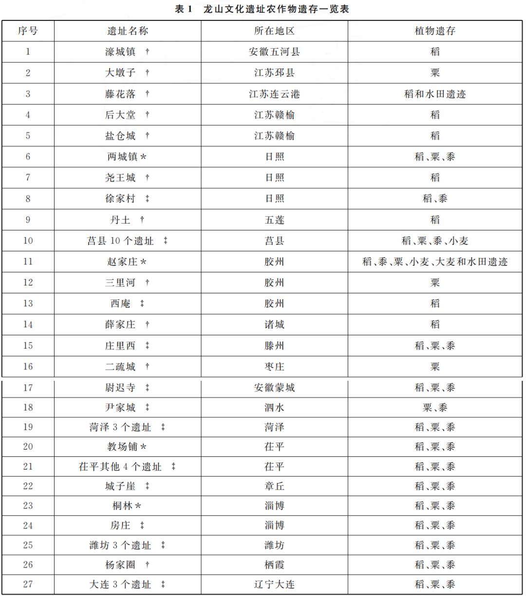 标记,是发掘或者调查过程中只是采集了肉眼可见的炭化植物遗存,如日照尧王城等遗址的结果,这类结果因其偶然性而可靠性最低。![]()