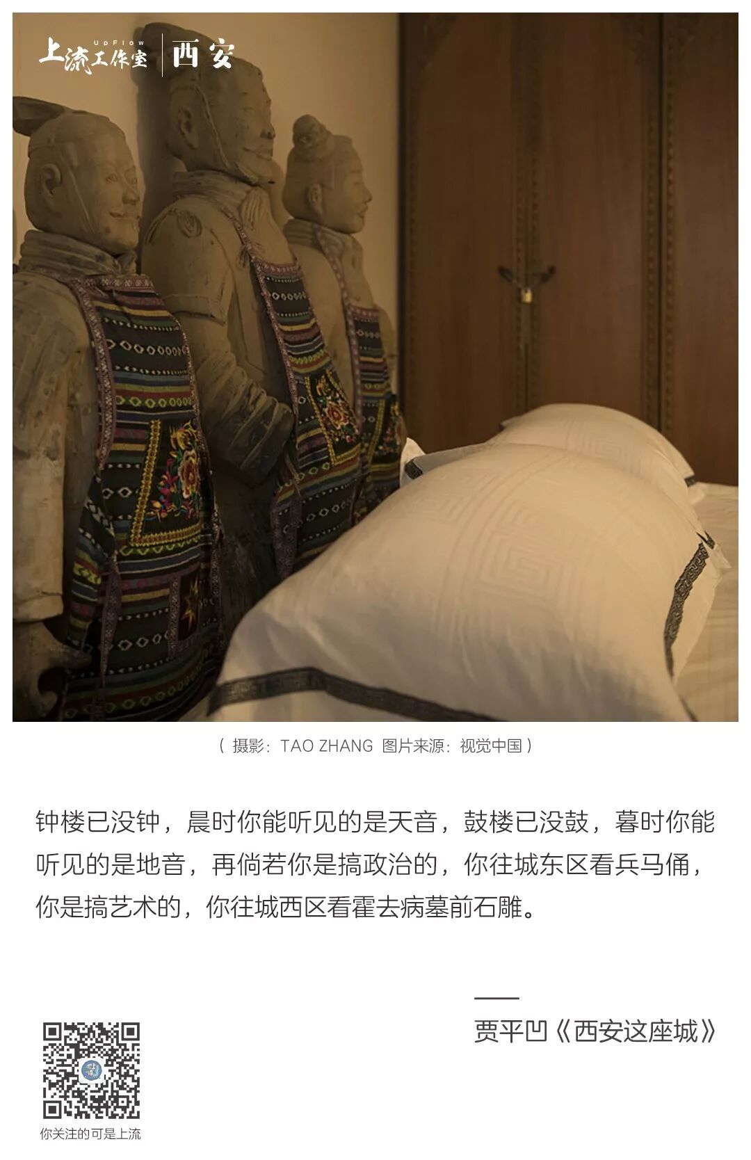就像贾平凹《西安这座城》里提到的那样,除了兵马俑,钟楼、霍去病墓、土城墙、大雁塔和曲江池等等都是经典的城市符号。