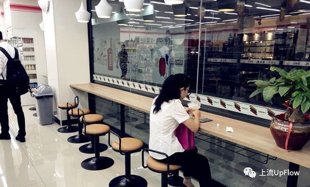 ▲上海的便利店会有简单的吧台,供深夜刚下班的人在这里吃便当