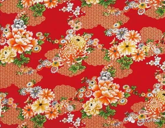 20世纪50、60年代,因为引进了自动滚筒染印机,台湾地区印花颜色增加到十几种,图案多源自传统常见的吉祥图案,如牡丹花、龙凤、鸳鸯等,颜色也以艳丽的桃红、大红等为主,和我们现在见到的东北花布几乎分不出什么差别。