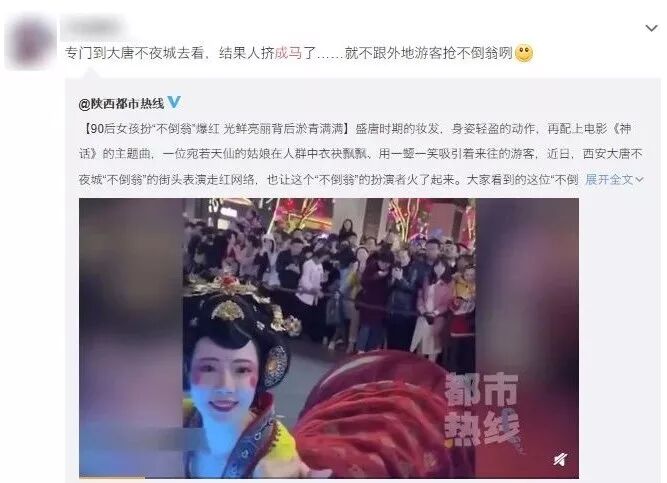 听闻最近西安大唐不夜城的不倒翁表演走红,去凑热闹的西安小伙伴观后感第一句话就是“挤成马了!”