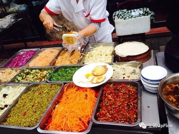 街头菜夹馍,上学时最幸福的事情!黄瓜、海带、土豆丝、红萝卜丝、咸菜、豆皮、洋葱、紫菜、锅巴……只要你想吃,什么都能往里夹,卖菜夹馍的阿姨也都特别实诚,恨不得把菜给你塞到爆炸。