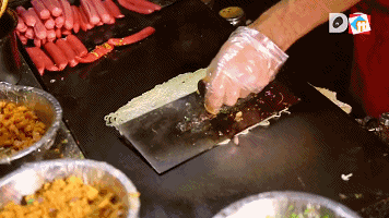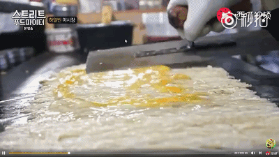 这一套动作说起来啰嗦,对于烤冷面师傅来说,其实只不过十几秒的时间。师傅什么水平,吹得再天花乱坠都没用,手底下见真章,流畅的烤冷面动作堪比一段舞蹈,唯快不破!