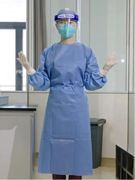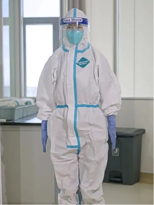 7.脱卸防护服时,不能用手接触污染面,脱衣动作轻柔,污染面勿触及干净衣物。
