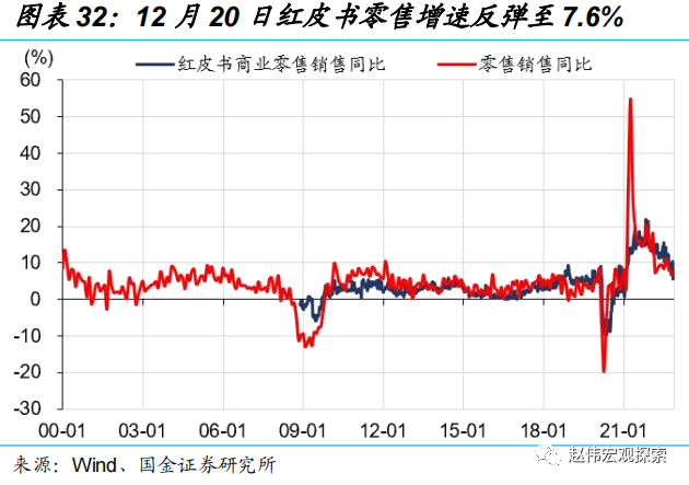 美国红皮书零售数据反弹。12月20日,美国公布上周红皮书零售数据,当周同比 7.6%,前值5.9%。为连续第二周反弹回升,但从全年来看,红皮书零售增速数据仍在下滑,今年最高增速为年初的18.8%,截至12月17日,已回落超10个点。
